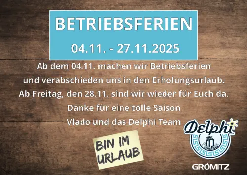 Unser Restaurant “ Delphi “ öffnete im Jahr 1994 das erste mal die Türen für seine Gäste. Seither sind schon 20 Jahre vergangen. Somit sind wir eines der ältesten griechischen Restaurants in Grömitz. Wir bieten Ihnen authentische griechische Küche in angenehmen Ambiente. Der blaue mediterrane Himmel und das Meer bestimmen die Vielfalt der Speisen und Getränke der Griechen. Probieren Sie bei uns Weine aus den ältesten Weinkellern, die aus den verschiedensten Regionen Griechenlands gesammelt wurden. Und genießen Sie die Sprichwörtliche Gastfreundschaft mit einen traditionellen Ouzo (nur für gute Freunde).